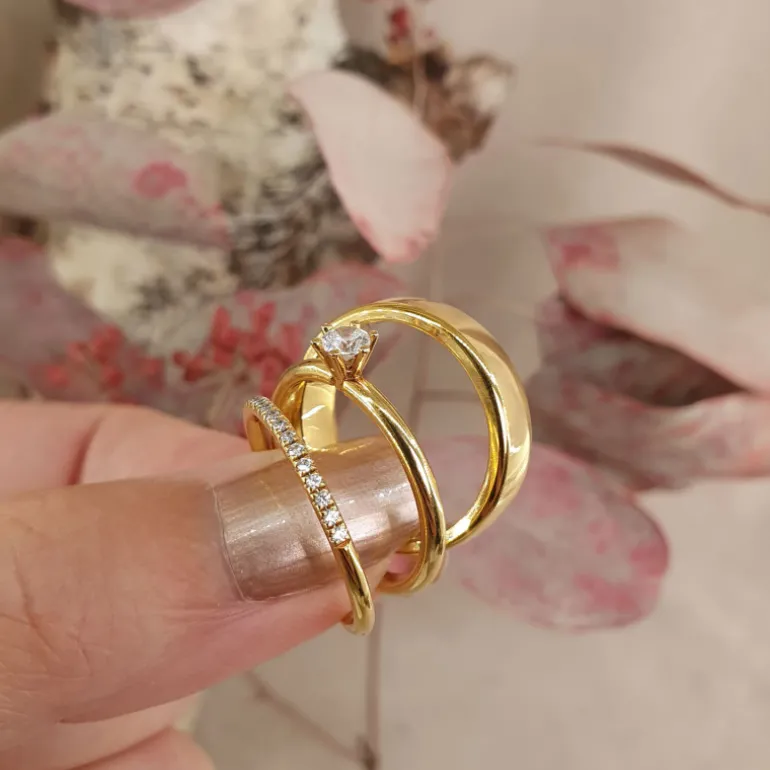 Svärdsjö, helt rund guldring som förlovningsring och vigselring med små diamanter från Dalecarlia Love Collection