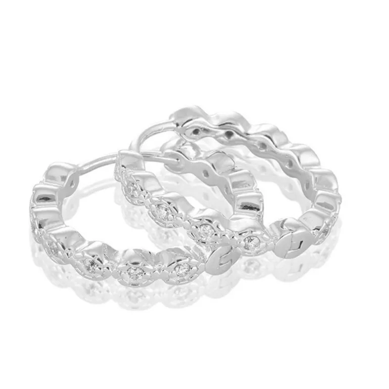 Time to glow, hoops creoler från Carolina Gynning med rombformat mönster och vita stenar. Material äkta silver och vita cubik zirkoner.