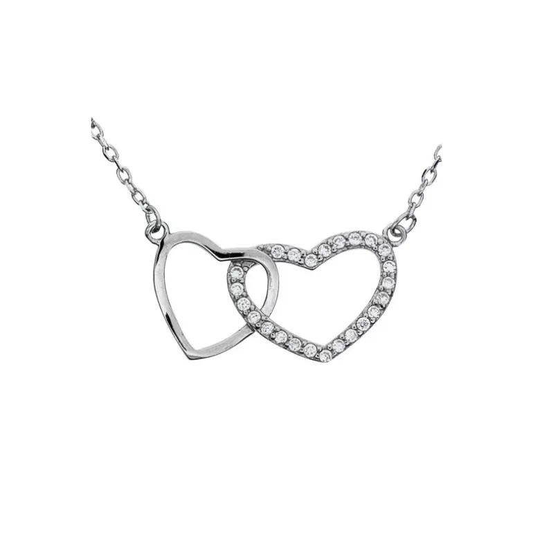 Halsband med två hjärtan, silverhjärtan, som sitter ihop i äkta silver 925.