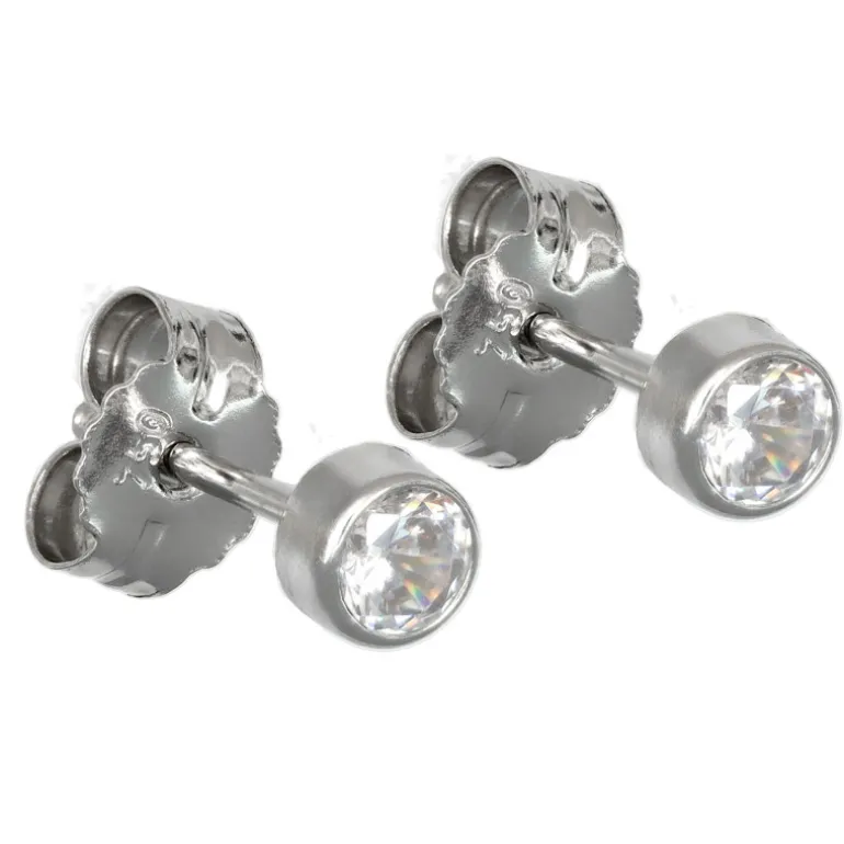 Små vitguldsörhängen, äkta vitt guld 18 karat med gnistrande vita cubik zirkoner. Slät rund sarg runt stenarna. Ytterdiameter 3,2 mm.