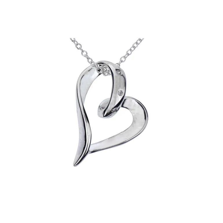 Vridet hjärta med glitterstenar i äkta silver på kedja.