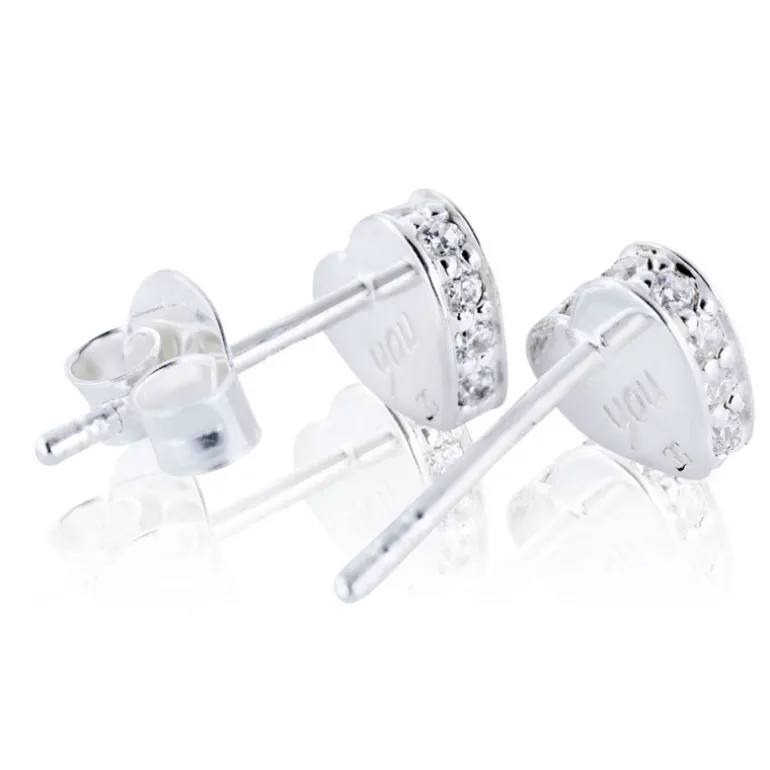 Örhängen You från Carolina Gynning, fasta silverörhängen med hjärta och glittriga stenar på sidan.