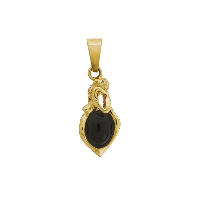 Smycke i 18 karat guld med en kvinnokropp och en manskropp samt en svart sten 7*9mm.